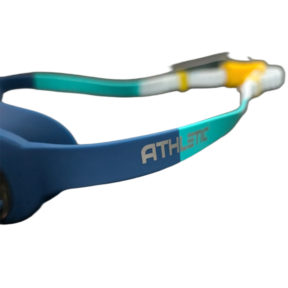 عینک شنا 7802 ATHLETIC – سرمه ای فیروزه ای با استفاده از بند سیلیکونی درجه یک و لنزهای مقاوم و ضد بخار محافظت کامل و دیدی واضح در آب را برای شناگران فراهم می کند.